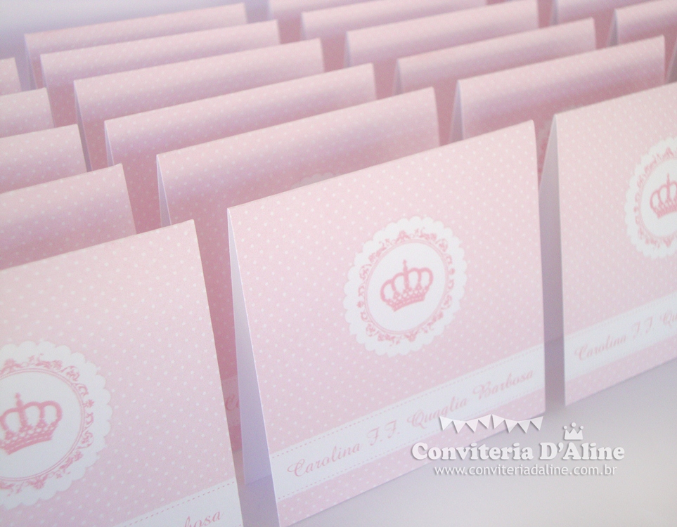 Esta linda papelaria personalizada foi entregue para a mamãe Viviane (SP). Ela encomendou cartões pessoais e etiquetas para a maternidade da sua princesa Carolina. O tema abordado para desenvolvimento da identidade visual foi "realeza" com um toque provençal. As cores escolhidas foram o branco e tons de rosa bem delicado e suave, próprios para a ocasião.